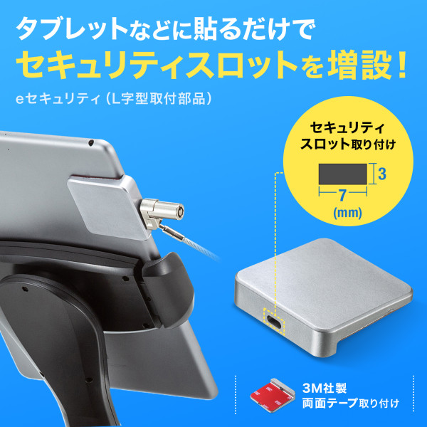 | iPadなどのタブレット、Surface、ノートパソコンなどに貼り付けてセキュリティスロットを増設できる、セキュリティ部品 | |||