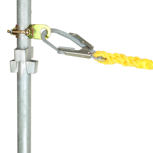 | 〈ご注意〉 足場や単管、単管を支持する部材、併用する器材や資材は十分な強度がある物を使用してください。 親綱を掛ける場合は、10m以内の間隔で設置してください。 ライフブロックをご使用時はなるべく支柱の近くに設置してください。 チェーンブロック等で荷を吊り上げるときは、単管の曲がりに気をつけながら作業してください。 墜落制止用器具(安全帯)はアブソーバ付を使用してください。 落下衝撃の加わったもの、目視でわかる変形の生じたものは使用しないでください。 2丁掛けはしないでください。 ロープやワイヤを直接掛けないでください。 使用できる方向に制限があります。(サブ画像参照) |