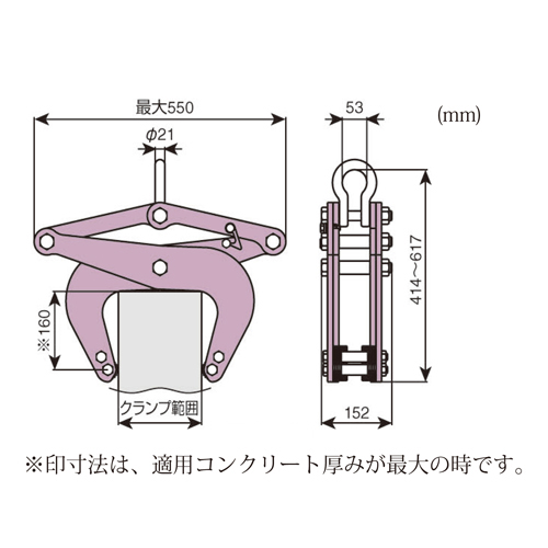 | 使用荷重 | 1000kg | クランプ範囲 | 30~180mm |