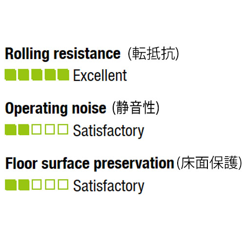 | タイヤ硬度 | 70 ショアD | 耐熱温度 | -25~80℃ (35℃以上では負荷容量が減少します。) |