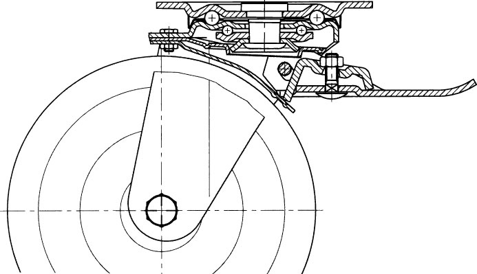 品名 : 200mm キャスター(自在金具・前輪ブレーキ付)