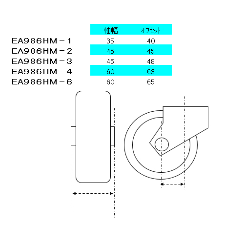 | タイヤ硬度 | 70 ショアD | 耐熱温度 | -25~80℃ (35℃以上では負荷容量が減少します。) |