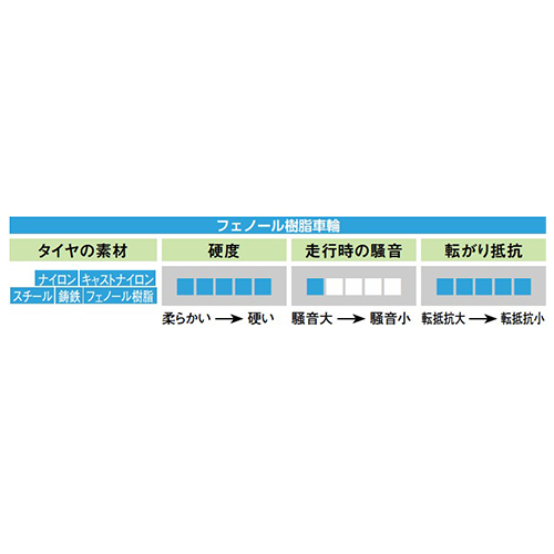| 耐熱温度 | -20~80℃ (35℃以上では負荷容量が減少します。) | タイヤ硬度 | 70 ショアD |