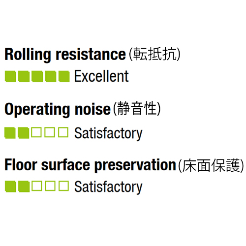 | タイヤ硬度 | 70 ショアD | 耐熱温度 | -25~80℃ (35℃以上では負荷容量が減少します。) |