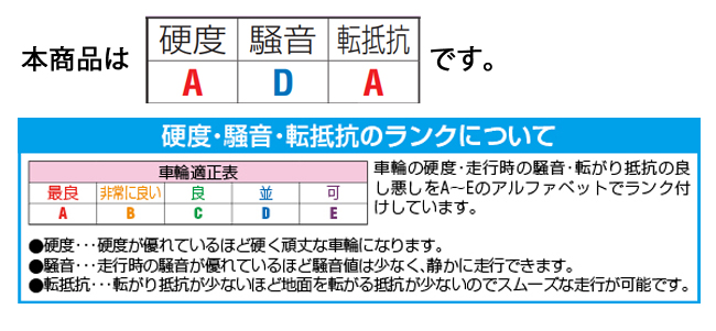 | 耐熱温度 | -25~80℃ | タイヤ硬度 | 80ショアD |
