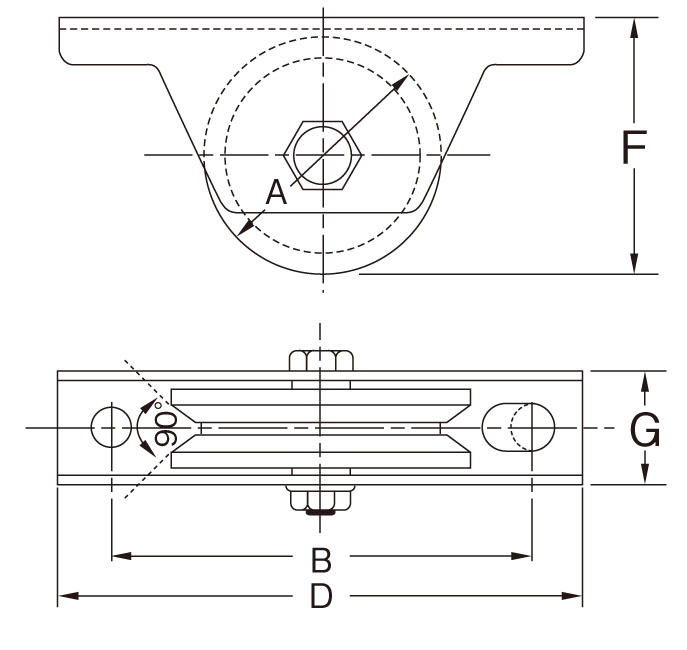 品名 : 50mm/ 200kg 戸車(重量用・V型・スティール製)
