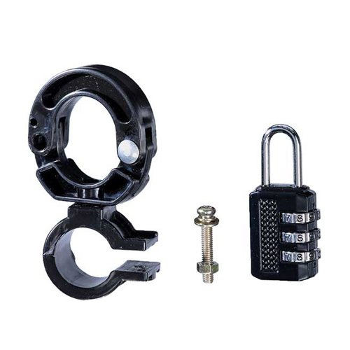 | ダイヤル式の南京錠がついているので、盗難防止にもピッタリ。 | |||