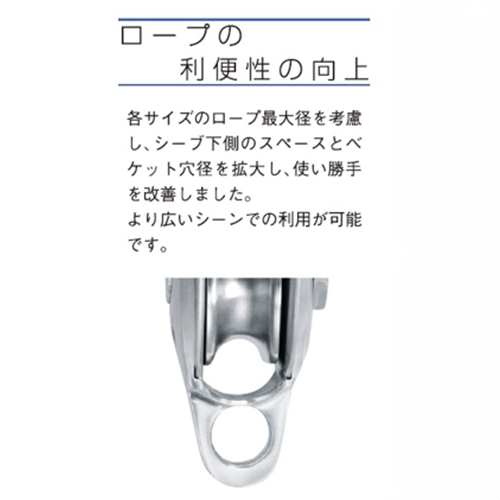| シーブ下側のスペースとベケット穴径を拡大し、使い勝手を改善。 広いシーンでの利用が可能です。 |