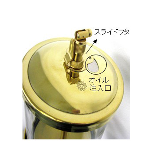 | オイラー上部の丸頭部を横に倒すと油は止まり、立てると流れます。 | |||