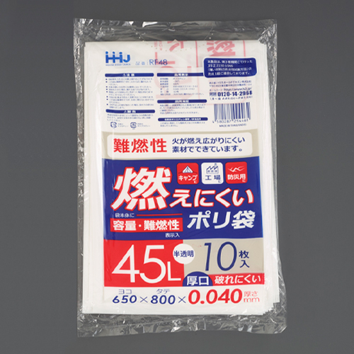 品名 : 650x800mm/45L 難燃性ポリ袋(半透明/10枚)