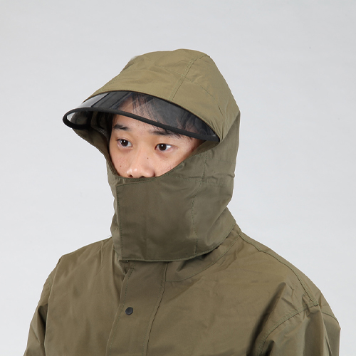 首の動きに合わせてフードが回るので、雨の日の作業中の視界を幅広く確保します。