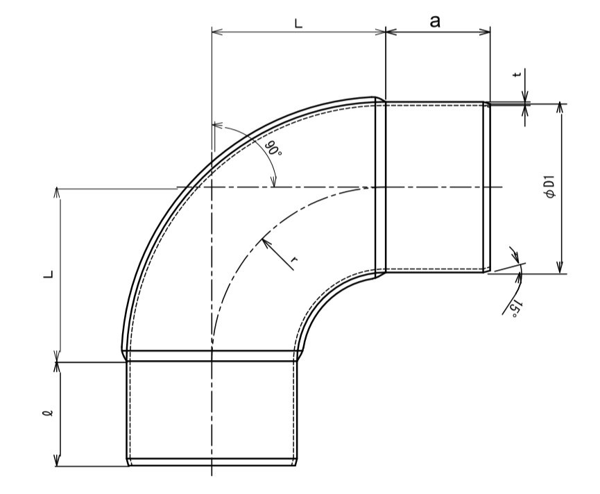 | サイズ(mm) | D1:198 D2:204 t:0.6 L:200 a:61 r:200 |