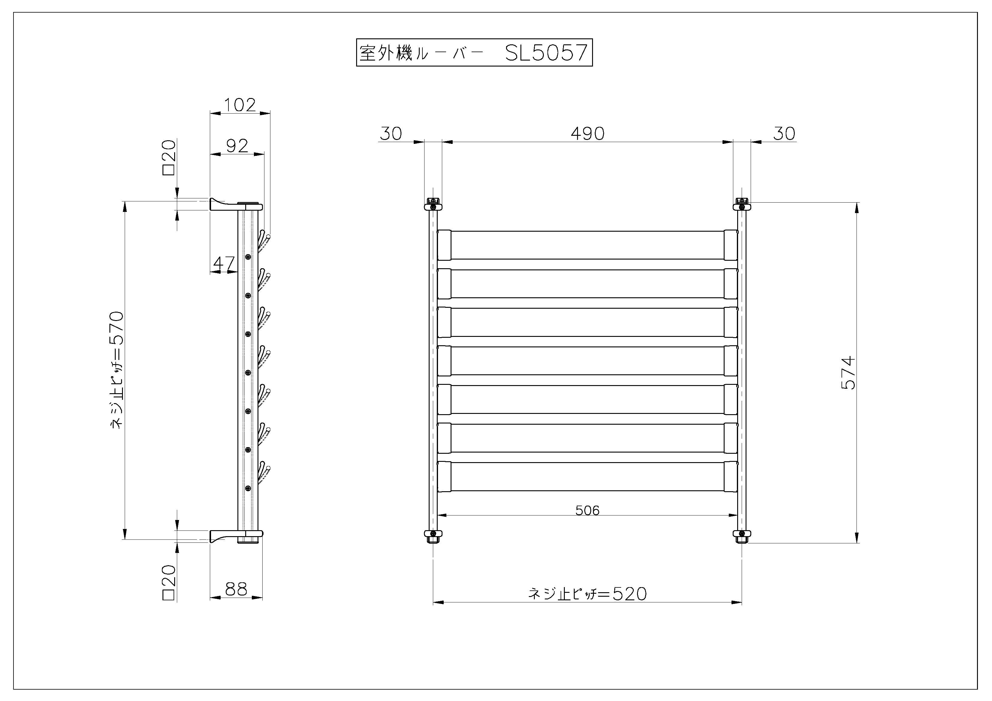 | 用途 | 室外機の排気方向調節 | サイズ | 550(W)×92~102(D)×574(H)mm |