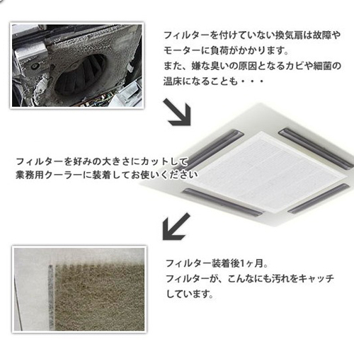 | 業務用エアコンのホコリ取り用フィルターとしてサイズを自由にカットし使用できます | |||