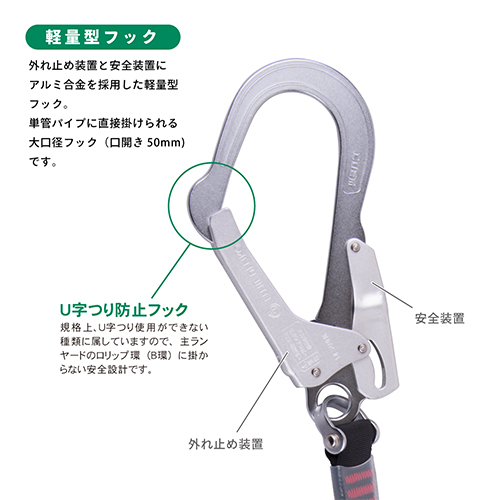 | 口開き | 構造物側:50mm | D環 | 補助ロープ用:ベルト幅50mm用 |