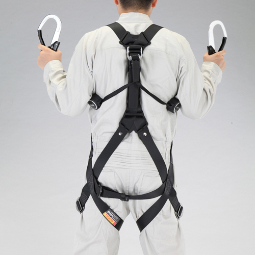 | より安全性が高いフルハーネス型なので、墜落時に身体がフルハーネスから抜け出すことを防止し、局部の圧迫、逆さま姿勢等の事故災害を低減します。 | |||