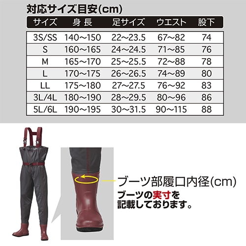 | ブーツ底は河川、磯場やテトラ、防波堤などに対応するフェルトソール | |||