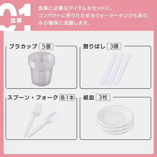 | 避難時に必要な衛生用品を揃え、避難生活を安心して送れるためのセットです。 | |||