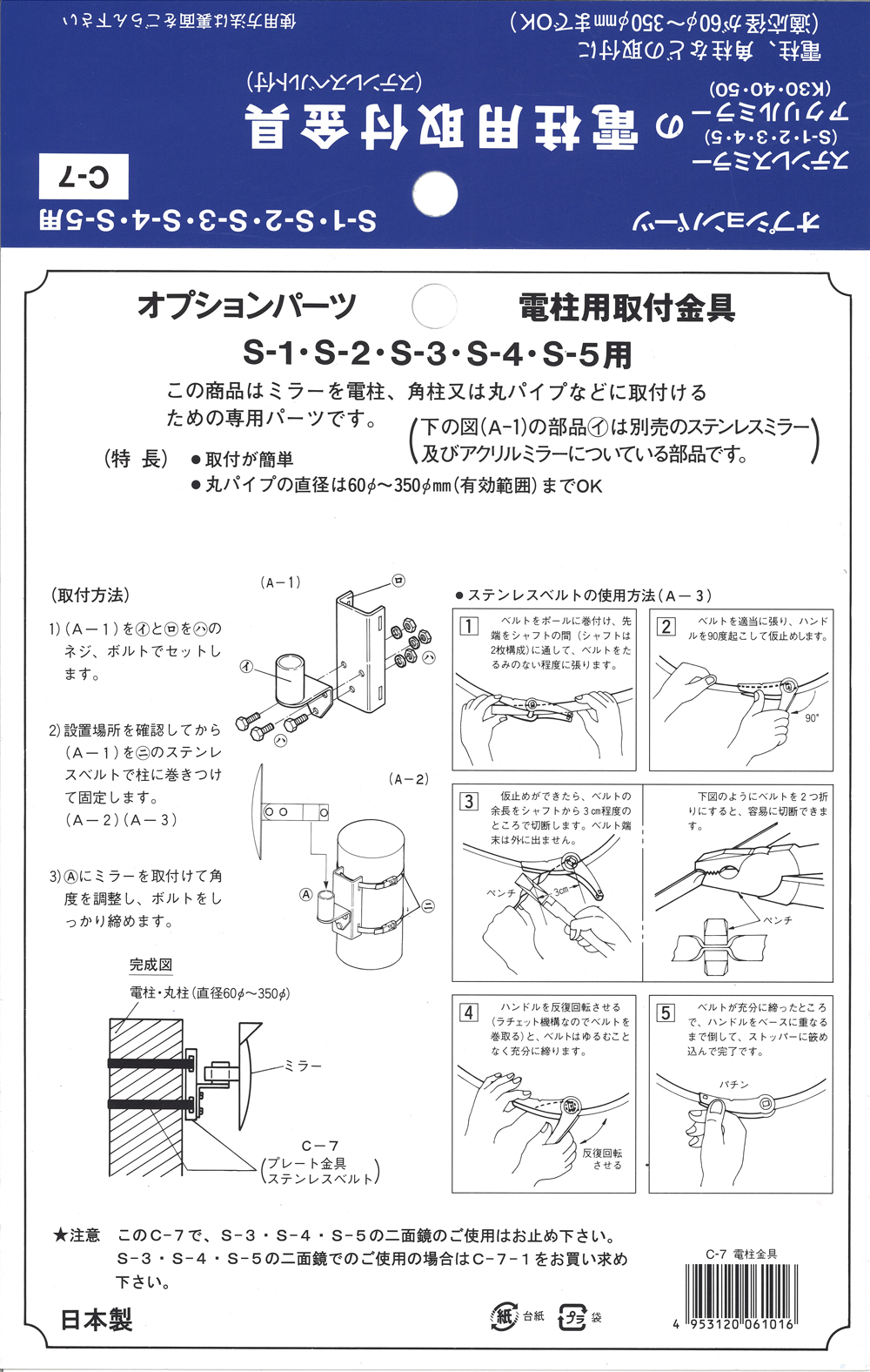 | Fitting for attaching mirror to pole |