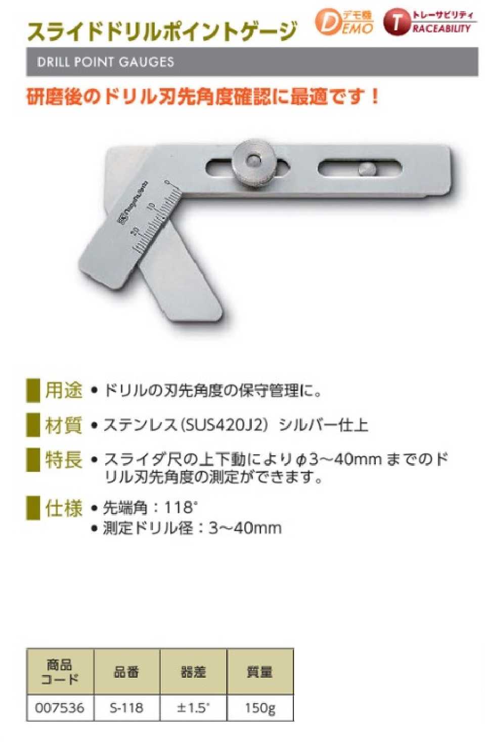 | The slider moves up and down for measurement of tip angle of a drill within dia. 3 to 40mm. |
