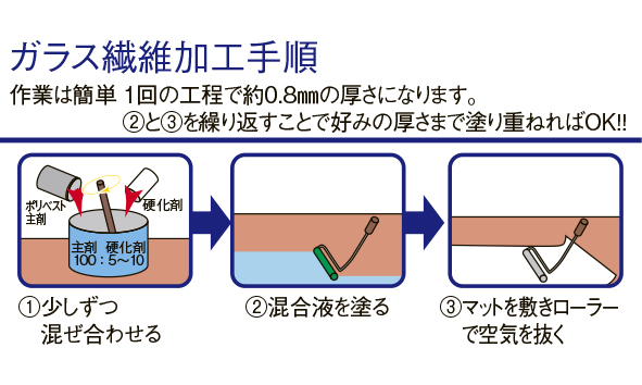Use this as FRP base material to create FRP by impregnating mixed liquid (major agent and hardening agent).