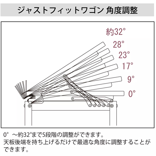 The top board can be regulated in 5 steps up to approx. 32 degrees.