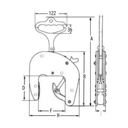 <Caution> Do not overload (the clamp may be deformed or the pin may break). Do not grab on the side (the clamp may come off and the lifted object may topple over or fall). Avoid clogging the cam (it may fall off). |