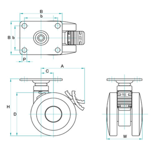 Description : Twin Urethane Wheel Caster Bolt Hole Plate with Brake